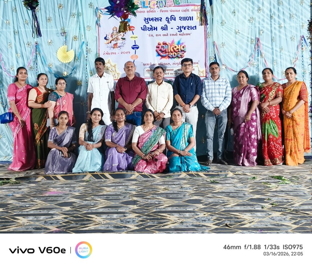 દાહોદ જિલ્લાના સુખસર તાલુકામાં આવેલ સુખસર કૃષિ શાળામાં પીએમશ્રી ગુજરાત રંગોત્સવ 2026નું ભવ્ય આયોજન કરવામાં આવ્યું હતું. કાર્યક્રમની શરૂઆત પરંપરાગત રીતે દીપ પ્રાગટ્ય કરીને કરવામાં આવી હતી, જેના સાથે સમગ્ર કાર્યક્રમમાં ઉત્સાહ અને ઉમંગનો માહોલ સર્જાયો હતો.